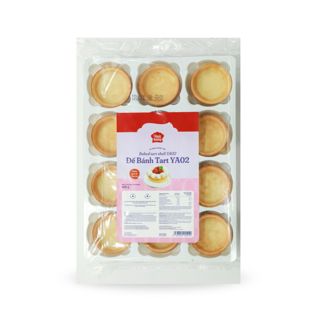Nhat Huong Baked Tart Shell YA02 , meticulously crafted with a perfect blend of 50% butter and 50% margarine. Ideal for bakeries and businesses, this versatile shell can be savored on its own or used as a delectable base for both sweet and savory fillings.