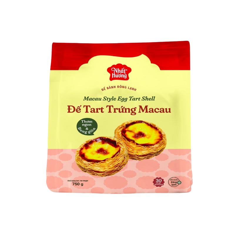 Đế Tart Trứng Macau Nhất Hương là dòng sản phẩm đế bánh đông lạnh của Công ty TNHH TM Tân Nhất Hương. Đây là sản phẩm đế bánh cao cấp chuyên dùng để nướng ra những chiếc bánh nở bung, giòn rụm đầy hấp dẫn. Sản phẩm vô cùng tiện lợi và ứng dụng linh hoạt có thể dùng cùng với nhân mặn hoặc nhân ngọt đều được.