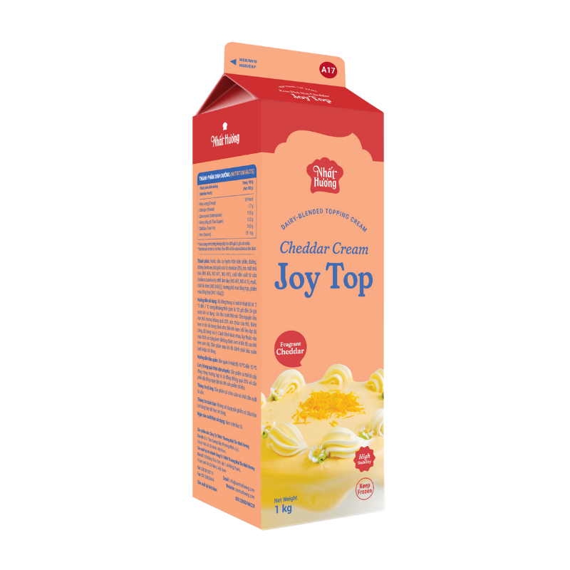 Joy Top – Kem Phô Mai Cheddar là dòng sản phẩm kem trang trí bánh của Công ty TNHH TM Tân Nhất Hương. Đây là sản phẩm chuyên dùng cho trang trí bánh kem, bánh Âu và các món tráng miệng.